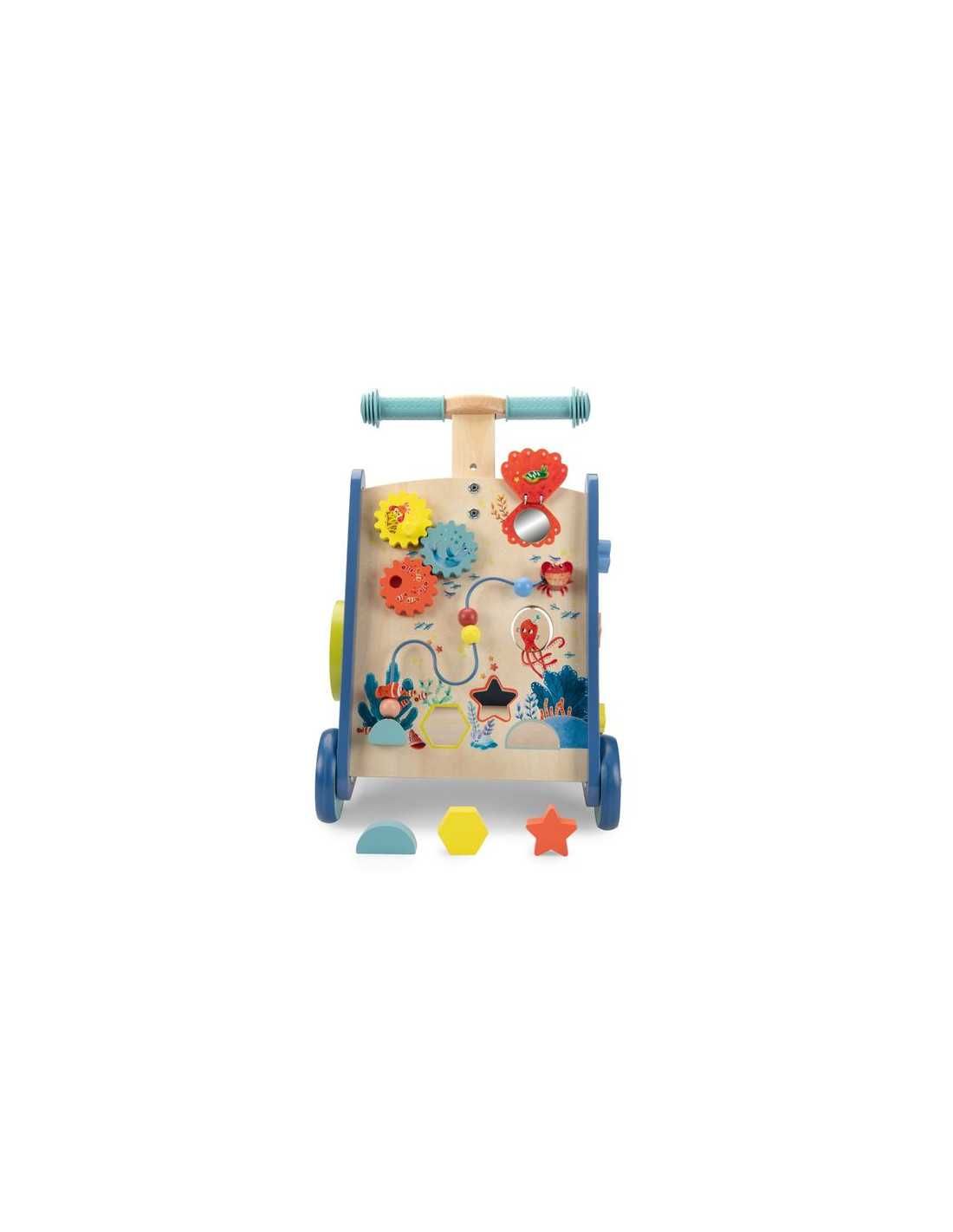 Habillé aux couleurs des aventures de Paulie, ce chariot d’activités antidérapant accompagnera bébé dans ses premiers pas. Il propose 6 activités : labyrinthe, engrenages, miroir… Tout pour explorer les fonds marins en s’amusant !