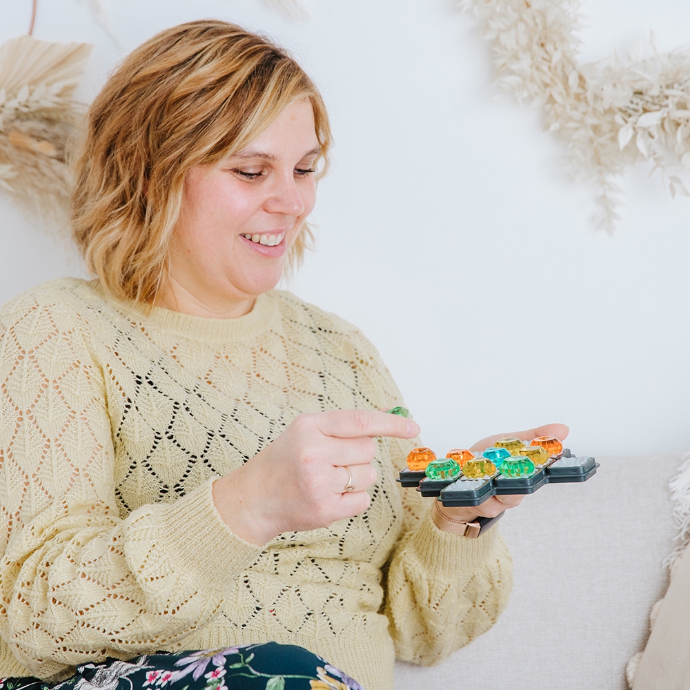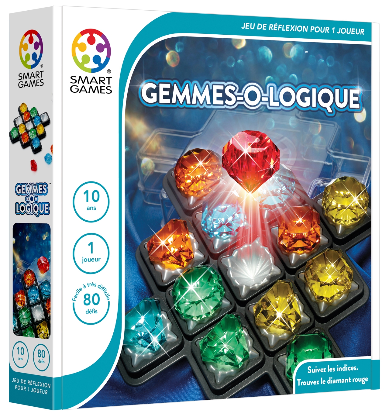 Gemmes-o-logic est un jeu de réflexion unique qui comporte 80 défis, du plus facile au niveau expert. A partir de 10 ans.