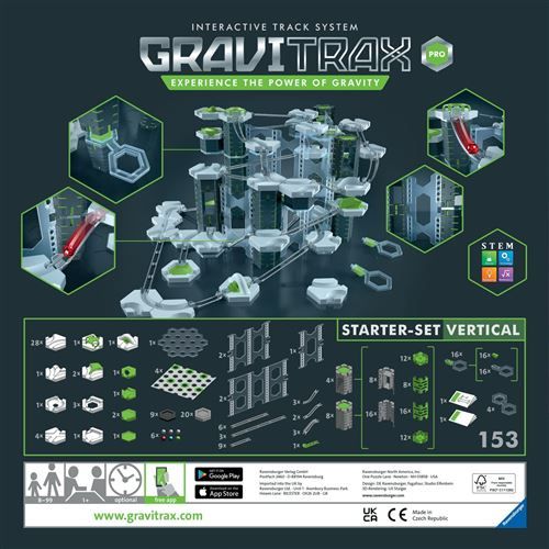 GRAVITRAX PRO : construisez en verticalité. Ce pack est compatible avec toutes les gammes, et il contient piliers murs qui permettent d’élever tout circuit existant.