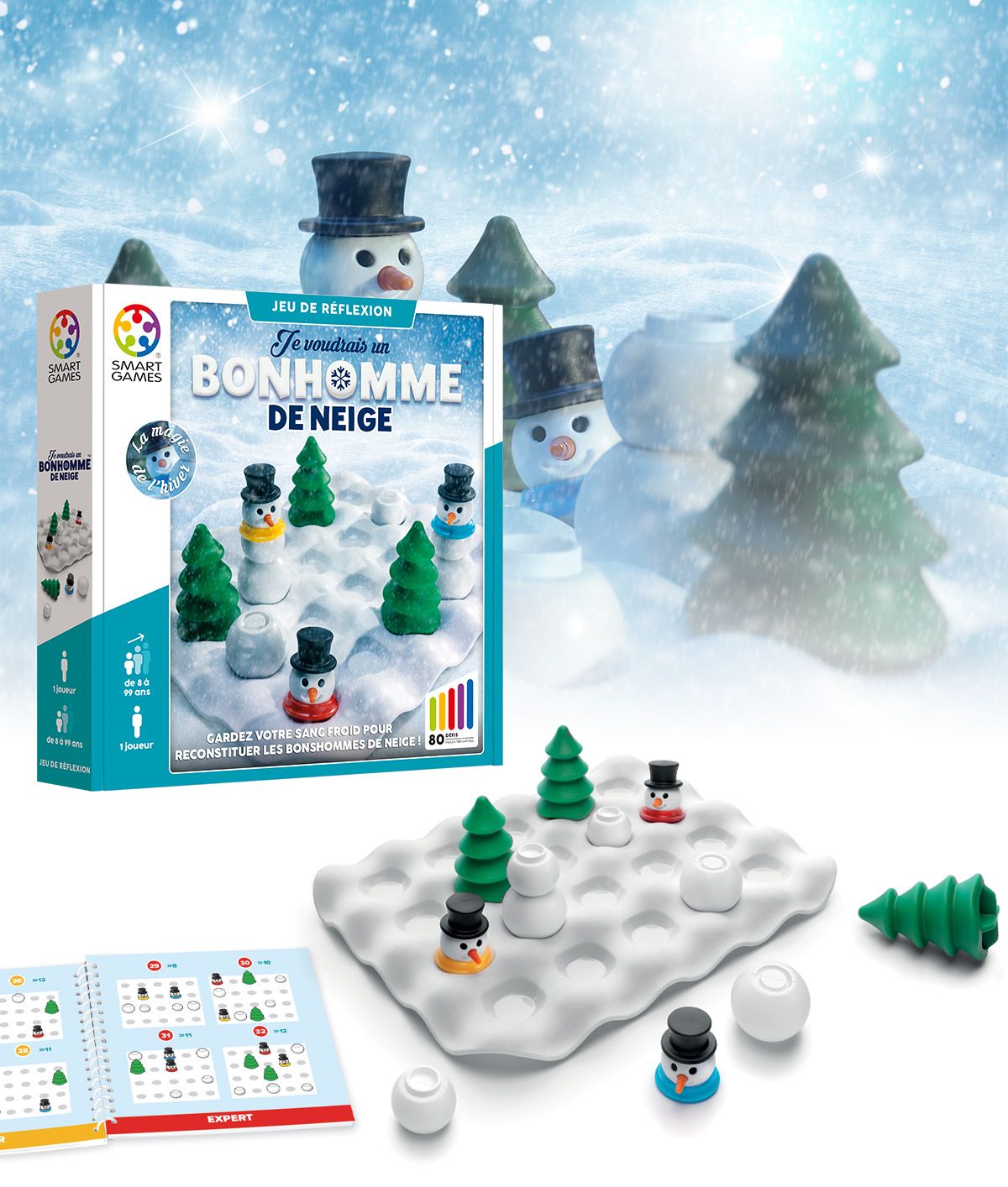 « Je voudrais un bonhomme de neige » est un jeu de déplacement indirect de pièces. A vous de planifier les mouvements afin de reconstituer tous les bonhommes de neige.