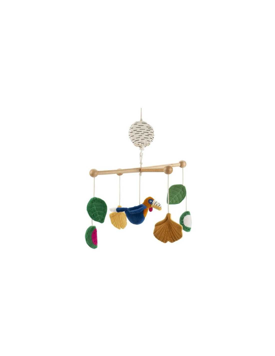 Emmenez bébé s’endormir au milieu de la forêt, entre feuillages, fruits sucrés et Litchi le calao coloré. Composé de bois et agrémenté des couleurs vives, il apaisera bébé avec sa douce mélodie tout en décorant délicatement sa chambre.