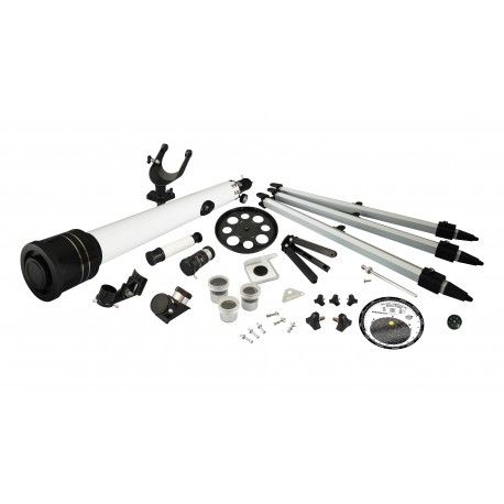 Tube entièrement en métal. Ouverture de 60 mm de diamètre et longueur focale de 700 mm. 3 oculaires fournis : 20 mm, 6 mm et un oculaire de Kellner 10 mm interchangeables. Trépied en aluminium avec deux positions : 65 et 110 cm.
